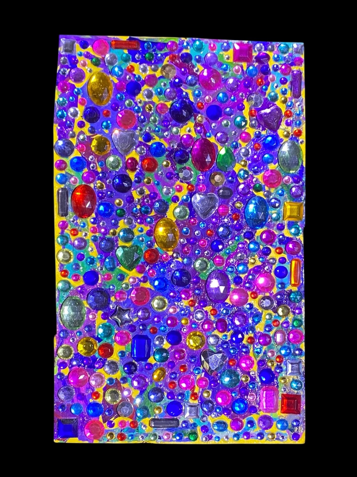 Original artwork. 12.5cm x 20.5cm - paper, cardboard, glue, acrylic paint and rhinestones. Completed in 2025
